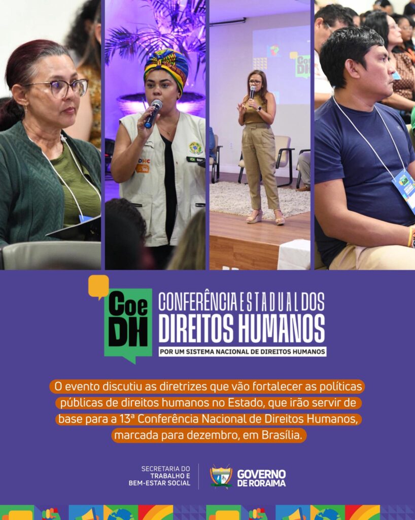 O Governo de Roraima por meio da Secretaria do Trabalho e Bem-Estar Social – Setrabes, promoveu na terça-feira, 7, a Conferência Estadual de Direitos Humanos. O evento discutiu as diretrizes que vão fortalecer as políticas públicas de direitos humanos no Estado e que servirão de base para a 13ª Conferência Nacional de Direitos Humanos, marcada para dezembro, em Brasília/DF.
