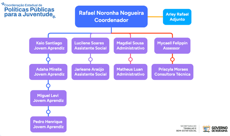 Coordenar, no âmbito do Estado de Roraima, programas e ações com finalidade profissional, cultural e psicossocial, contemplando a promoção do bem-estar, em todas as suas manifestações, beneficiando os jovens em geral por meio dos projetos executados pela Secretaria de Estado do Trabalho e Bem-Estar Social.