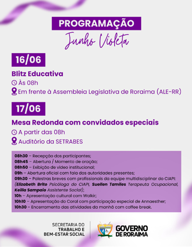 O Governo de Roraima por meio da Secretaria do Trabalho e Bem-Estar Social (Setrabes), via Centro Integrado de Atenção à Pessoa Idosa (CIAPI), realizou nesta terça-feira, 17, Mesa Redonda com convidados em alusão ao Junho Violeta.