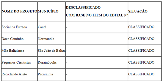 Confira abaixo Resultado da 1ª Fase do “II Concurso de Boas Práticas Municipais no SUAS – RR: Trabalho Social Com Famílias”