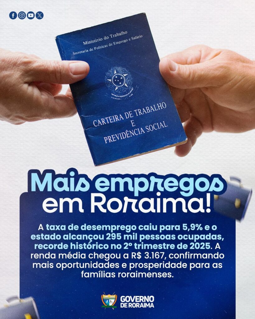 Resultados como estes, mostram que as políticas de desenvolvimento do Governo de Roraima estão gerando mais oportunidades e prosperidade para as famílias roraimenses.